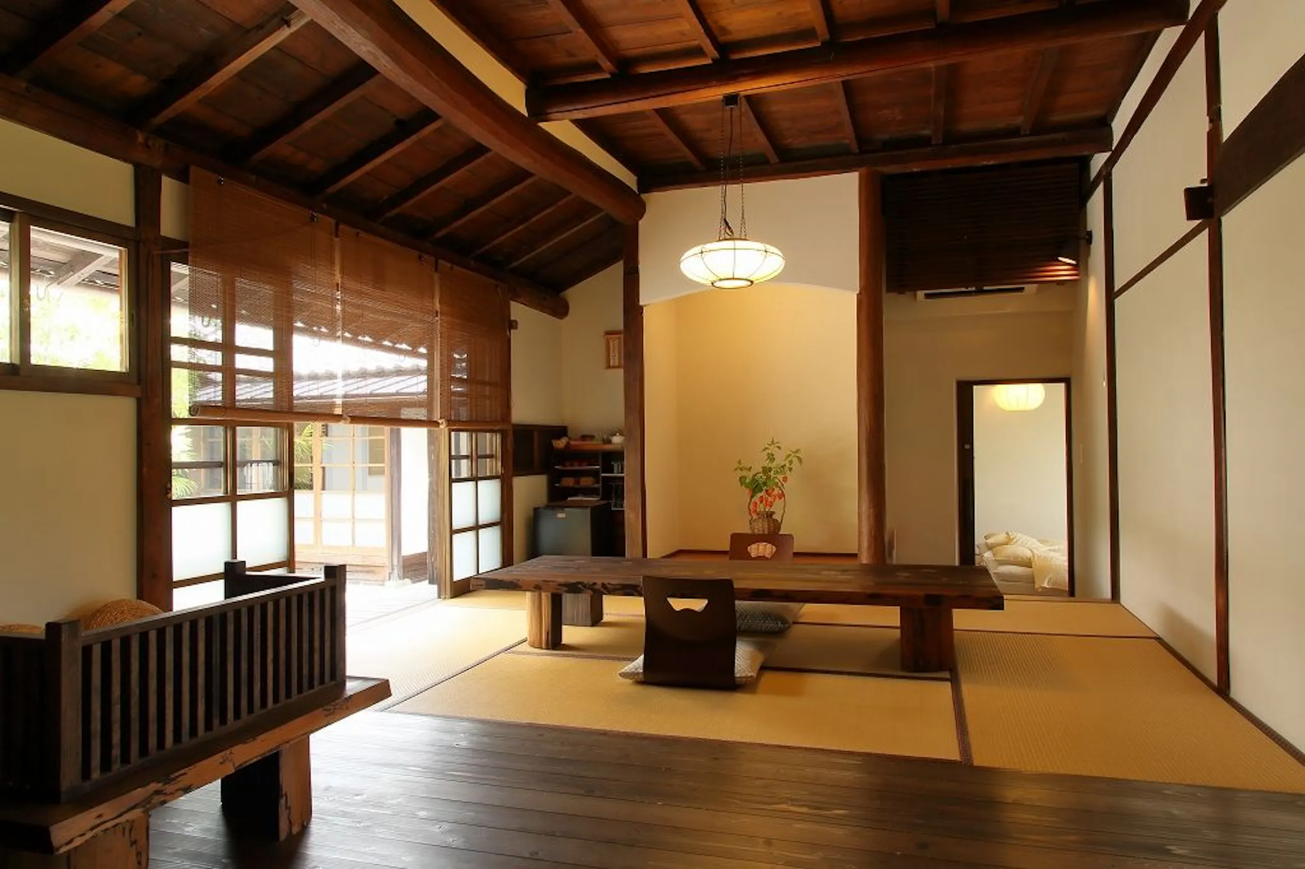 林業で栄えた上市の中心部にある、江戸末期から明治初期に建てられた元林業商家の古民家です。虫籠窓・階段箪笥・梁・建具など、当時の建築様式を残しながらリノベーションした簡易宿泊所です。
